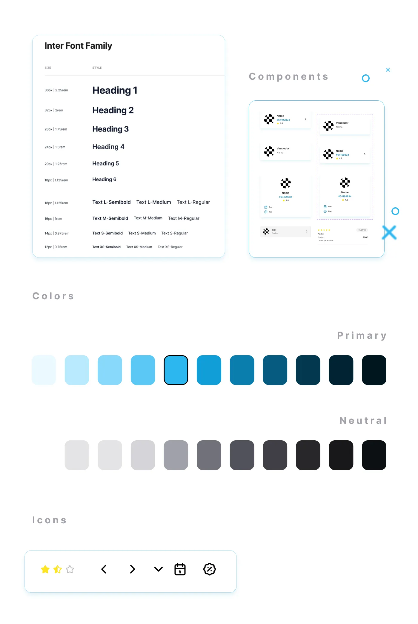 I used the primary brand color along with an easy-to-read font like Inter. I decided that the design would be dominated by light tones, both on the surfaces and in the shadows, so that the interface would feel fresh and friendly.