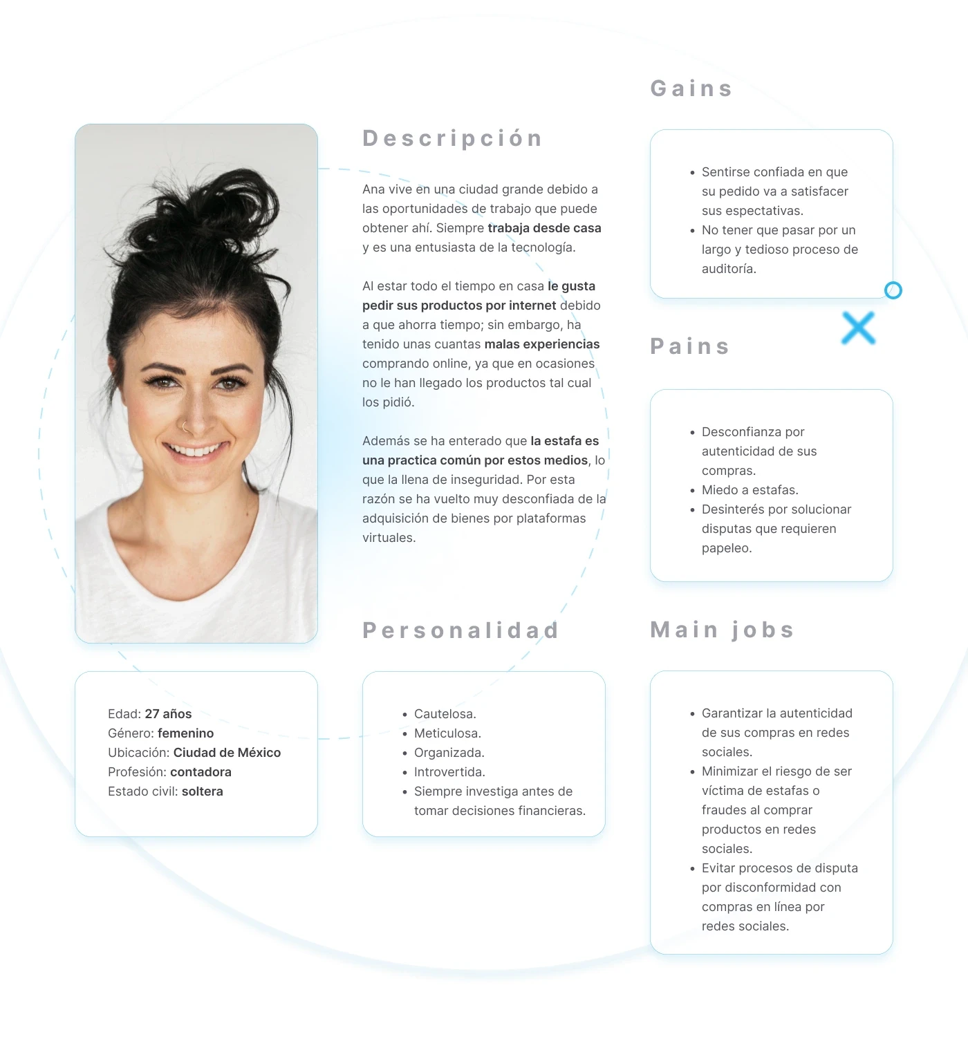 The results of the qualitative research allowed me to create a user persona to synthesize the collected findings and continue the process with a specific type of end user in mind when designing.
