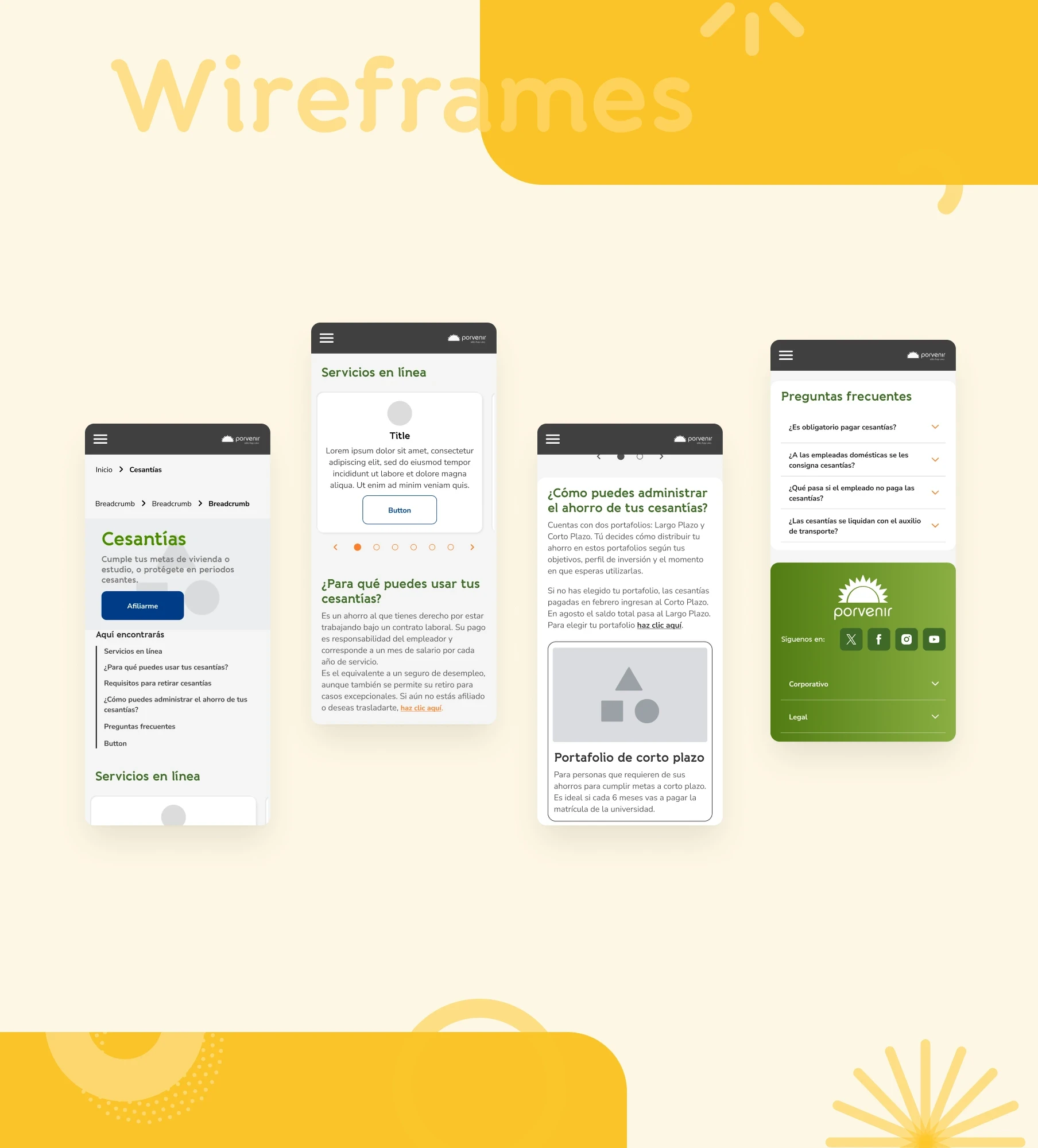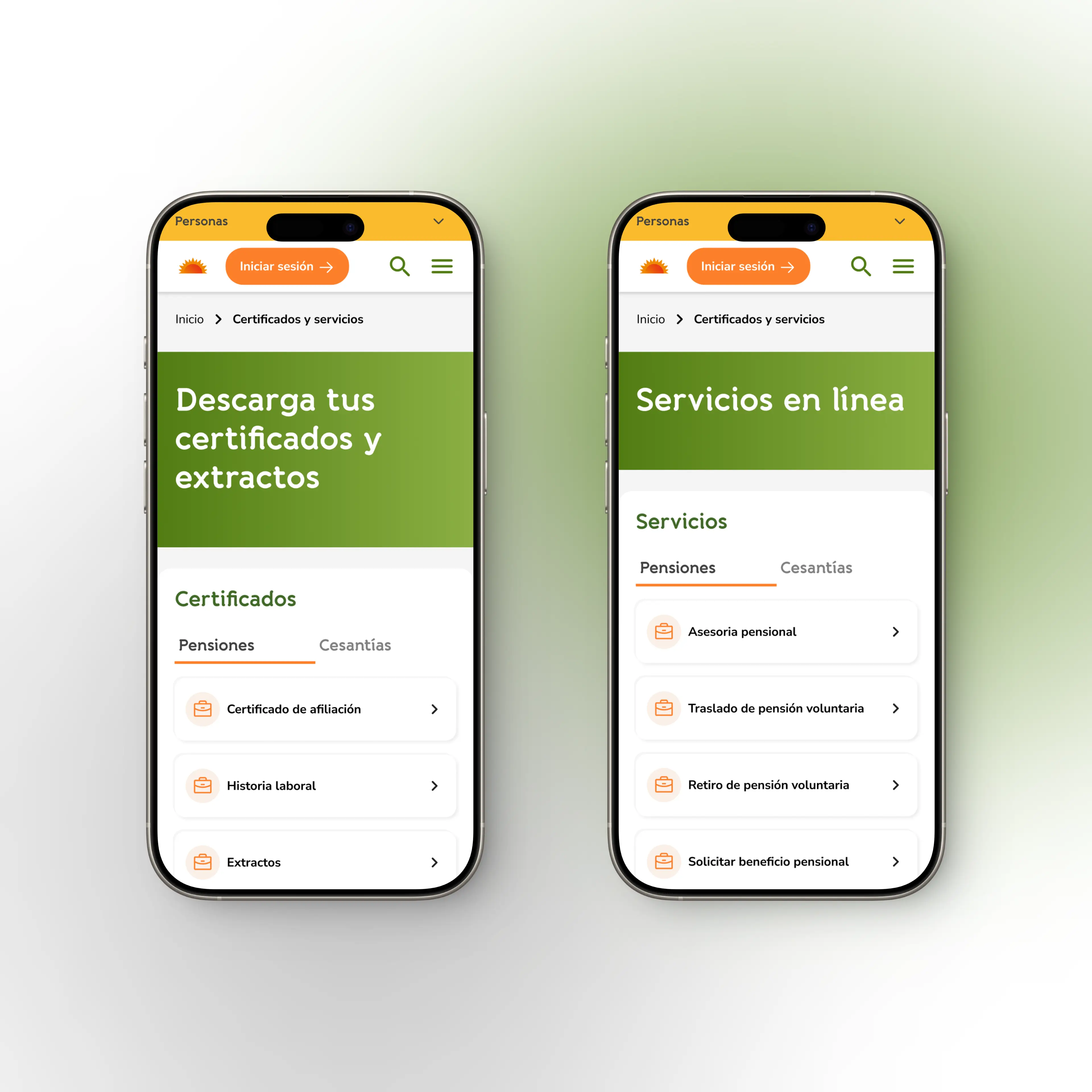 The process consisted of 4 main phases. The first involved meetings with the client to define priorities and conducting tree testing to improve the sitemap. The second was defined by usability testing and card sorting to adjust the sitemap. In the third, medium-fidelity prototypes were created to evaluate their usability, there were meetings with the client and the development team to define the content structure. For the fourth phase, the visual style was defined based on sessions with stakeholders to understand the brand, also in this phase the components and patterns of the Design System were developed and documented.