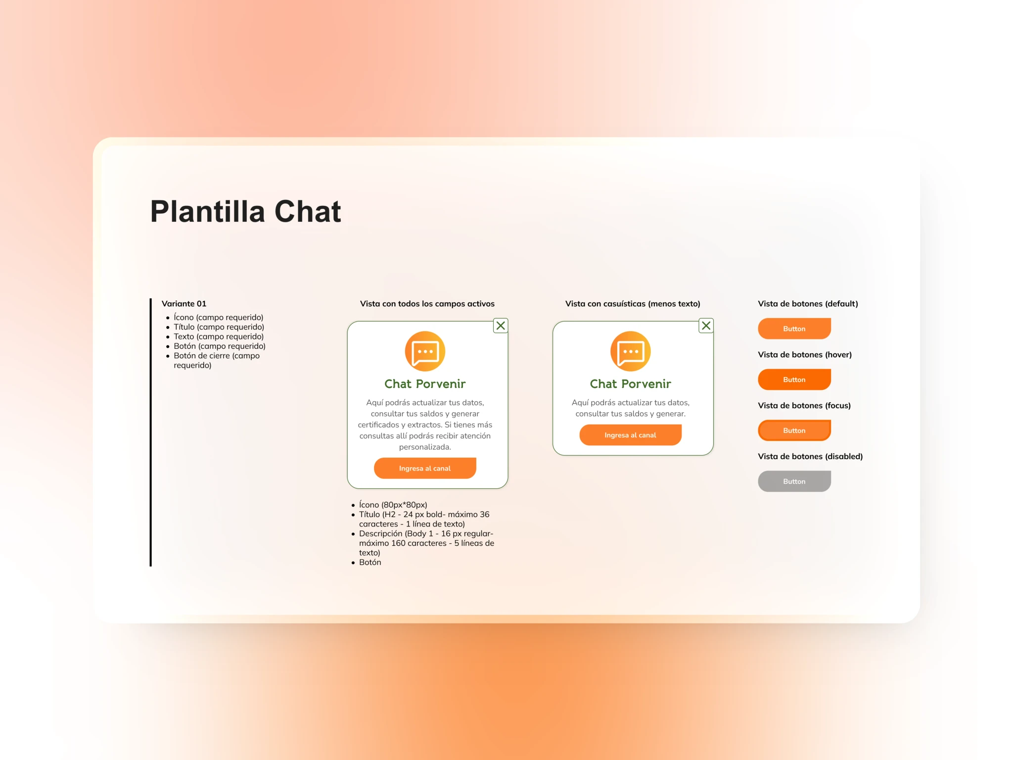 Templates were designed for the components, which are detailed references with technical specifications. These templates ensure that developers or other designers can understand and correctly apply the established standards.