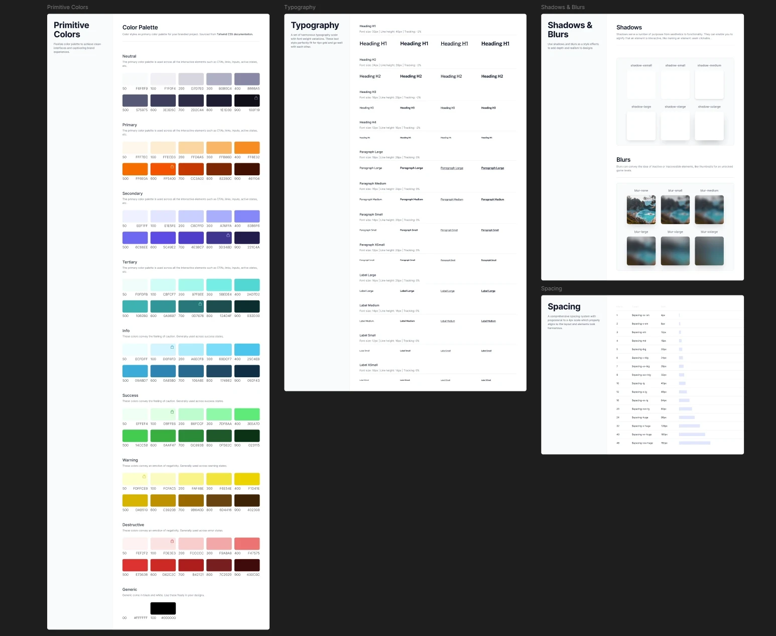 Style guide (colors, typography, shadows, blurs and spacing)