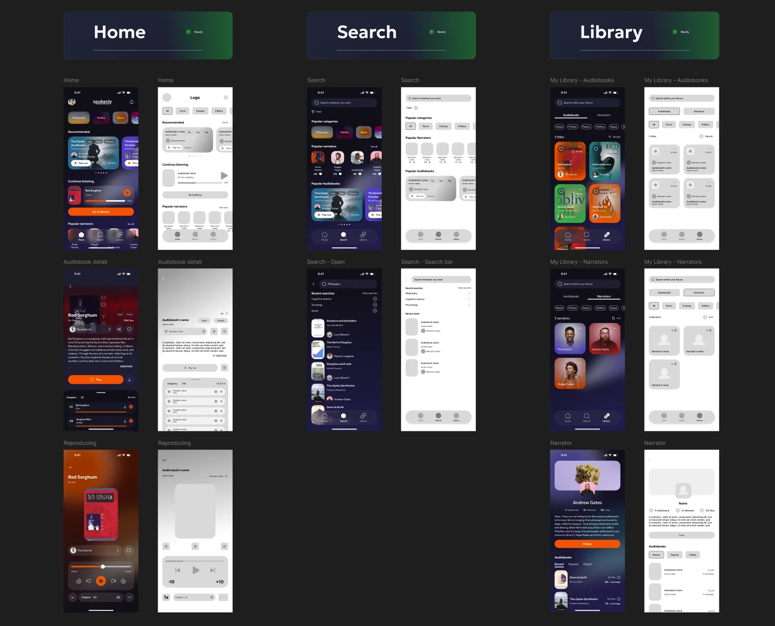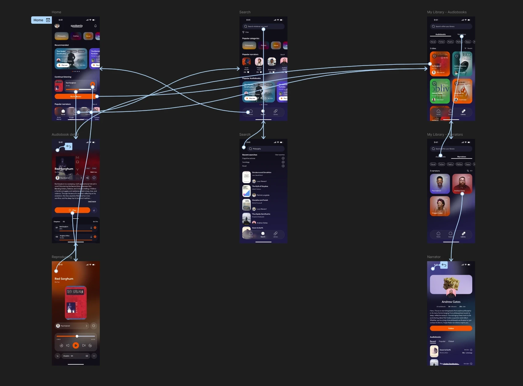 The initial idea of a music and podcast player shifted to focus on audiobooks, allowing me for a deeper exploration of features and content tailored to this format. With a clean and modern design, Spokenly offers a space where users can easily discover and enjoy works ranging from novels to essays, all enriched by the unique voices of their narrators.